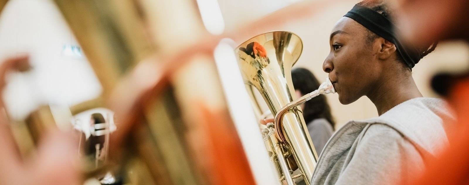 Trompettes, trombones et tubas mais aussi bugles et cornets sont regroupés pour initier les participants au jeu des instruments appartenant à la famille des cuivres. Du classique au jazz, en passant par le marching band, chacun découvre les différentes facettes de ces instruments avec un répertoire adapté.