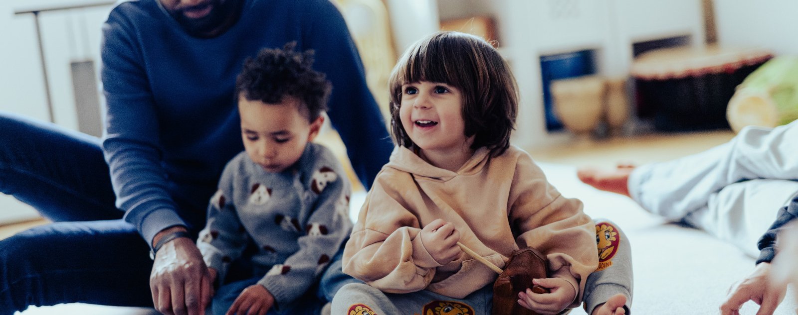Parents et enfants sont réunis pour partager un temps musical tout en complicité. Chaque duo adulte-bébé est invité par le musicien pédagogue à contribuer aux jeux sonores en manipulant instruments et matières. Une séance d’éveil sensoriel où l’écoute et l’expérimentation invitent non seulement aux premières émotions musicales mais aussi à l’ouverture à l’autre.