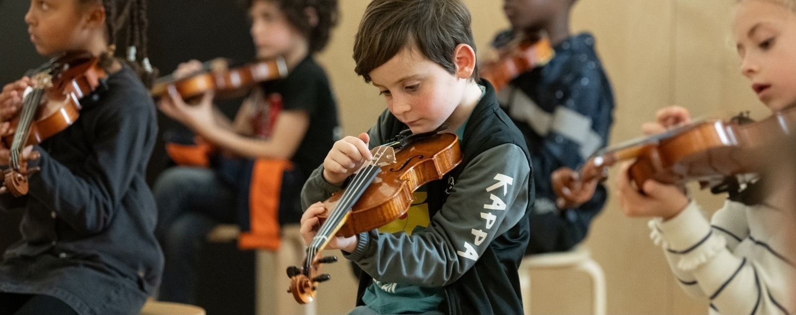 Les élèves découvrent les cordes de l’orchestre : violon, alto et violoncelle. Ils expérimentent les gestes de base – pizzicati, techniques d’archet, tenue d’instrument, contrastes de nuances, respirations musicales – et jouent ensemble un arrangement d’une pièce du répertoire classique.