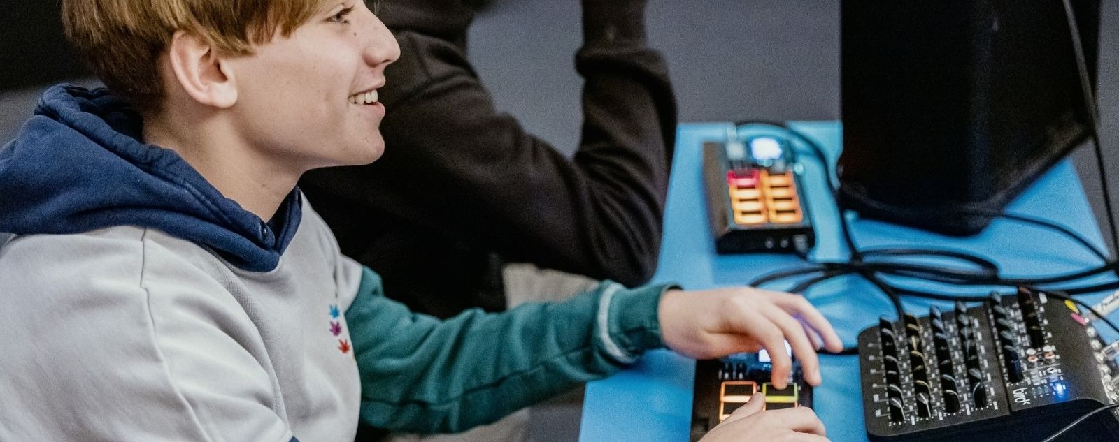 Le groupe est invité à composer une oeuvre collective en studio, en partant des sons à sa disposition : instruments analogiques ou virtuels, voix, corps et objets sonores. Le travail est guidé par des compositeurs et compositrices aux esthétiques variées, afin d’aborder différentes approches de la création musicale.